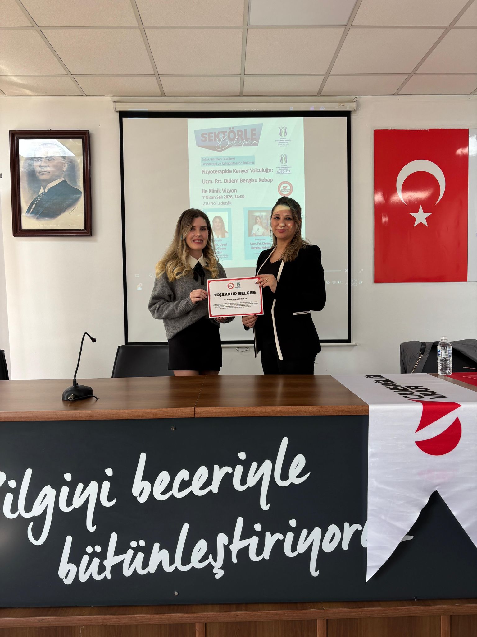Fizyoterapi ve Rehabilitasyon Bölümü ve Can Sağlığı Topluluğu’nun düzenlediği, “Fizyoterapide Kariyer Yolculuğu: Uzm. Fzt Didem Bengisı Kebap ile Klinik Vizyon” başlıklı etkinliğimiz gerçekleştirilmiştir. Konuğumuz Uzm. Fzt,. Didem Bengisu Kebap, Dr. Öğr. Üyesi Sena Gizem Arslan moderatörlüğünde mesleğe dair merak edilenleri öğrencilere aktarmıştır.