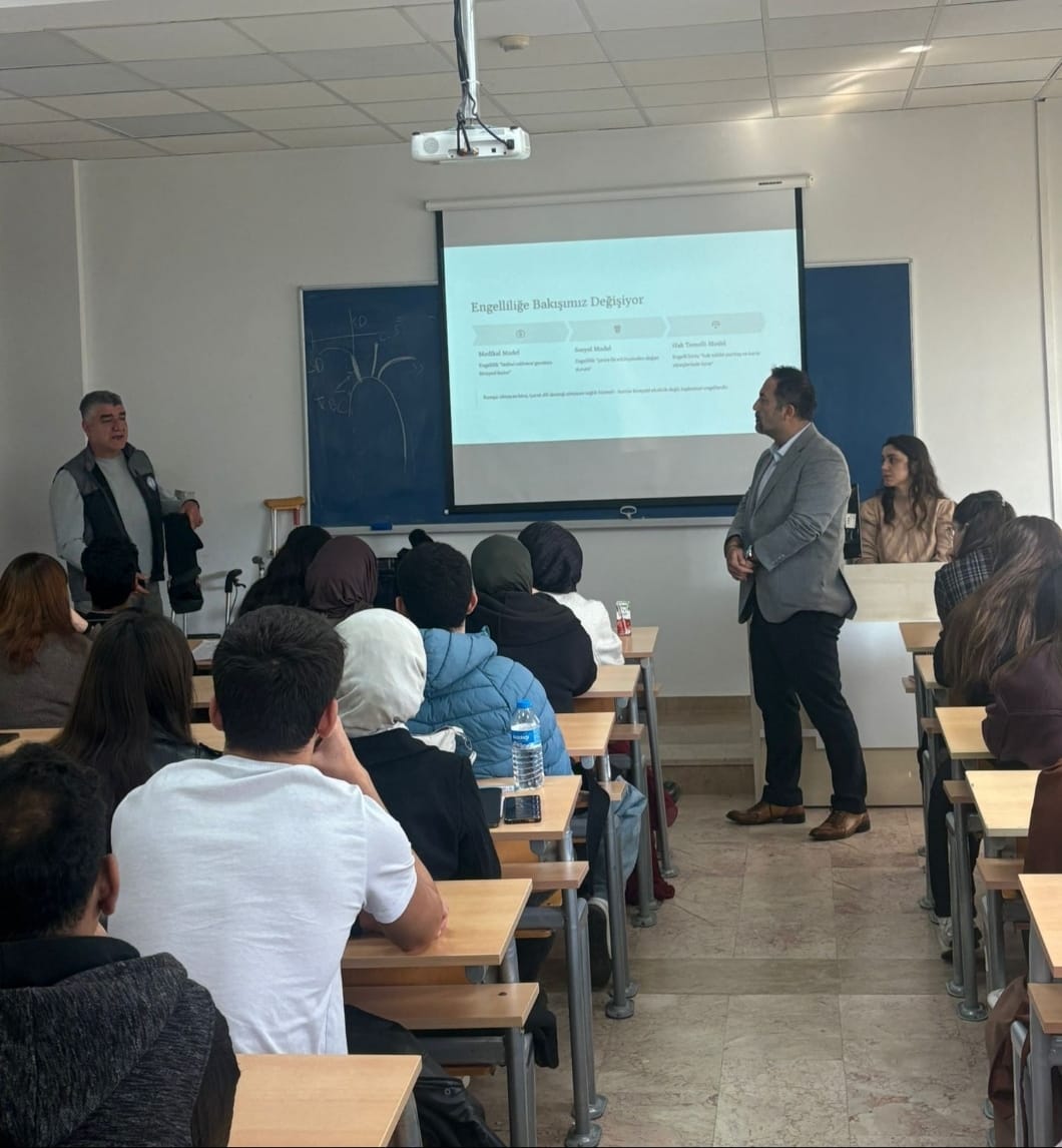 Fakültemiz Fizyoterapi ve Rehabilitasyon Bölümü Başkanı Dr. Öğr. Üyesi Oğuzhan Bahadır Demir’in moderatörlüğünde “Toplumsal Katkı ve Sürdürülebilirlik” konulu etkinlik düzenlendi. Toplumsal sorumluluk bilincinin güçlendirilmesi ve sürdürülebilirlik çalışmalarının akademik ve sosyal alanlarda yaygınlaştırılması ele alındı. Etkinliğe Ortopedik Engelliler Eğitim Kültür ve Dayanışma Derneği Sakarya Şubesi Şube Müdürü Murat Polat konuk olarak katıldı.